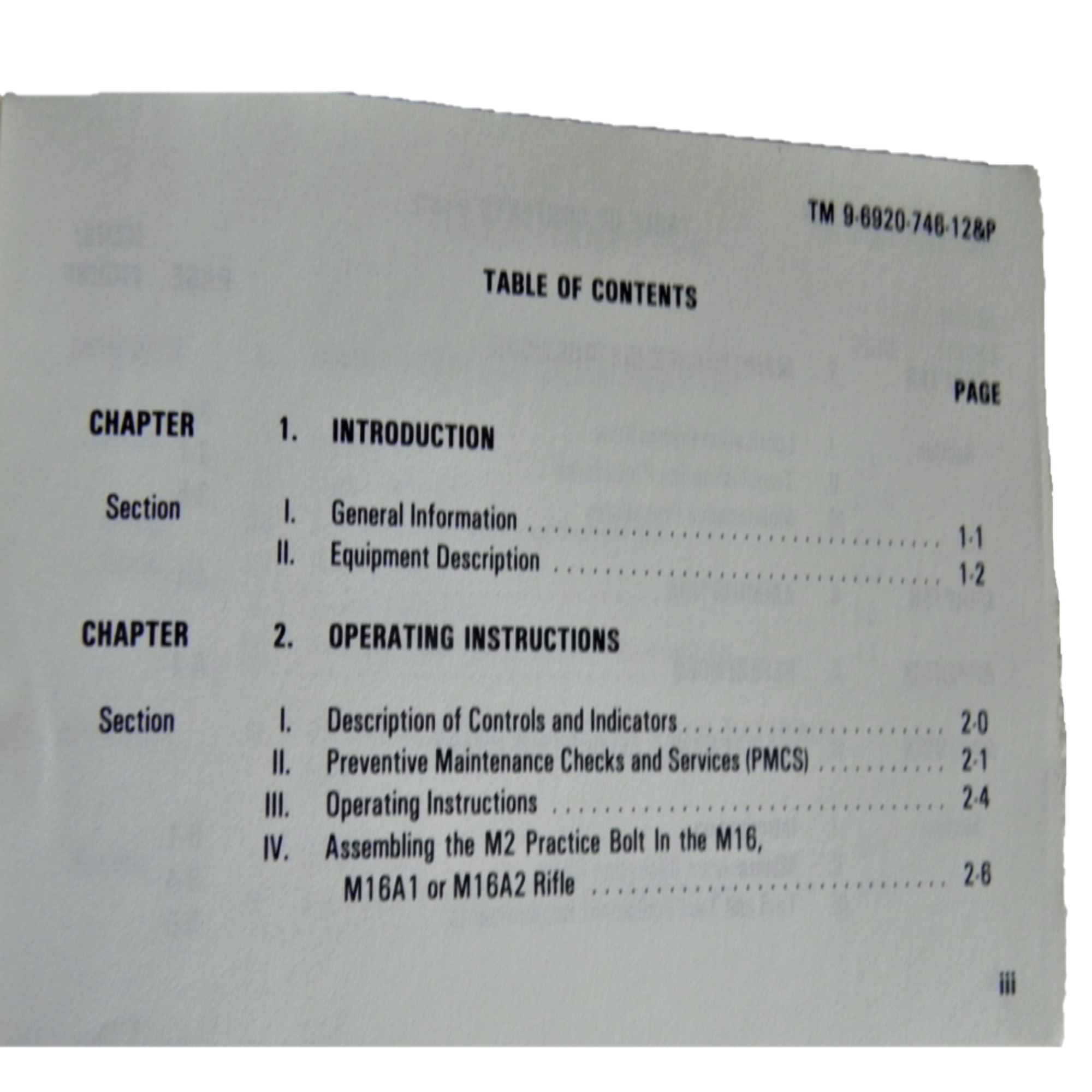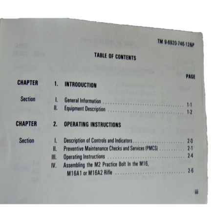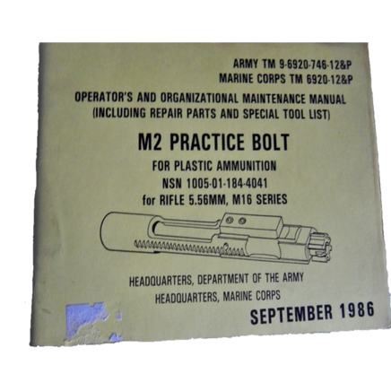 Military Book Operator's and Organizational Maintenance Manual (Including Repair Parts and Special Tool List) M2 Practice Bolt for Plastic Ammunition for Rifle 5.56MM, M16 Series. Headquarters, Department of the Army, Headquarters, Marine Corps, September 1986