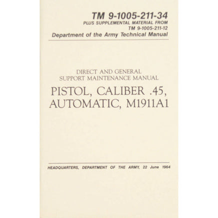 Military Book Department of the Army Technical Manual TM 9-1005-211-34, Plus Supplemental Material From TM 9-1005-211-12. Direct and General Support Maintenance Manual, Headquarters, Department of the Army, 22 June 1964. History and Development of John Moses Browning's Most Famous Pistol Pictures of the 1895 Prototype Gas-Operated Pistol and Model 1900 Recoil-Operated Pistol.