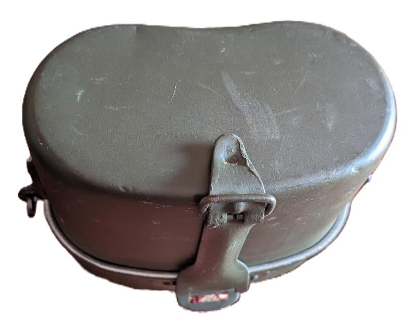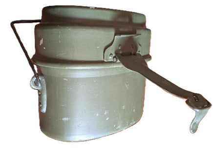 Large Pot With Hanging Swivel Handle to Position over the Campfire, Fry Pan With Handle That Folds Away, Nestles into a Single Unit With Metal Carry Handle