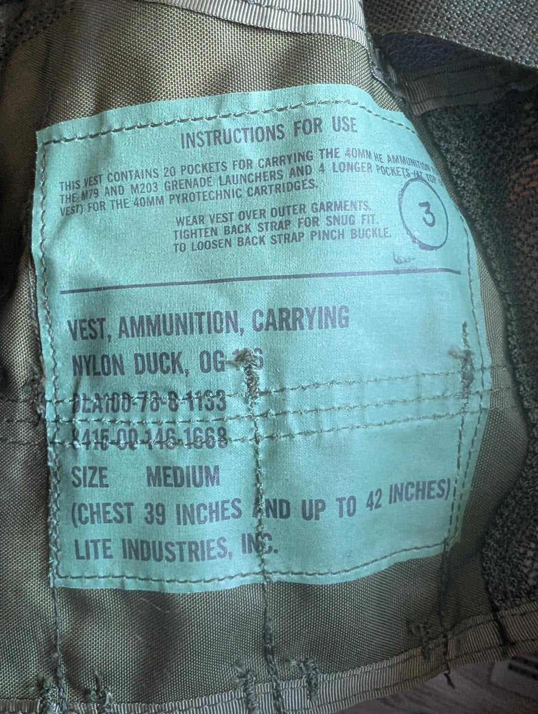 U.S. Military Grenade Ammunition Carry Vest 1980's Issue