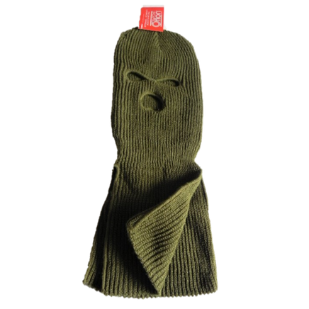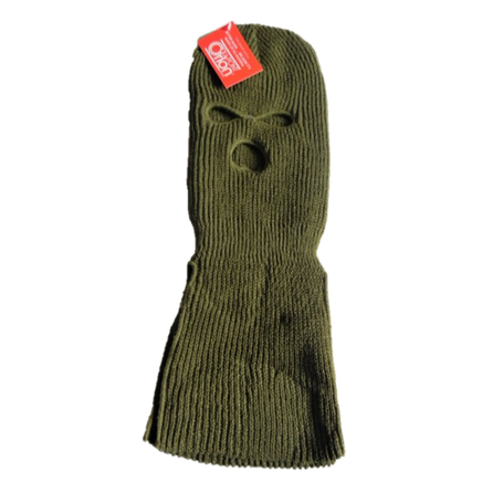 Olive Drab 3-Hole Acrylic Face Mask: Shop our new 3-hole Face Mask in olive drab, made from 100% Orlon Acrylic. It measures 18 inches long and is designed to provide full coverage of your neck, top of the chest, and back.