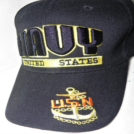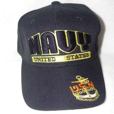 Color: Black With Yellow Accents, 3-D Effect Lettering, U.S.N. in Orange on Brim