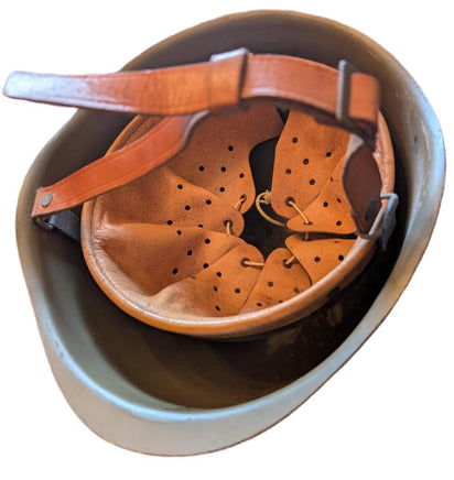 Fully Adjustable Genuine Leather Suspension Liner, Leather Chin Strap With Buckle Closure, Felt Padded Sweat Band for Cushioned Comfort, Large Red Star on Front of Helmet